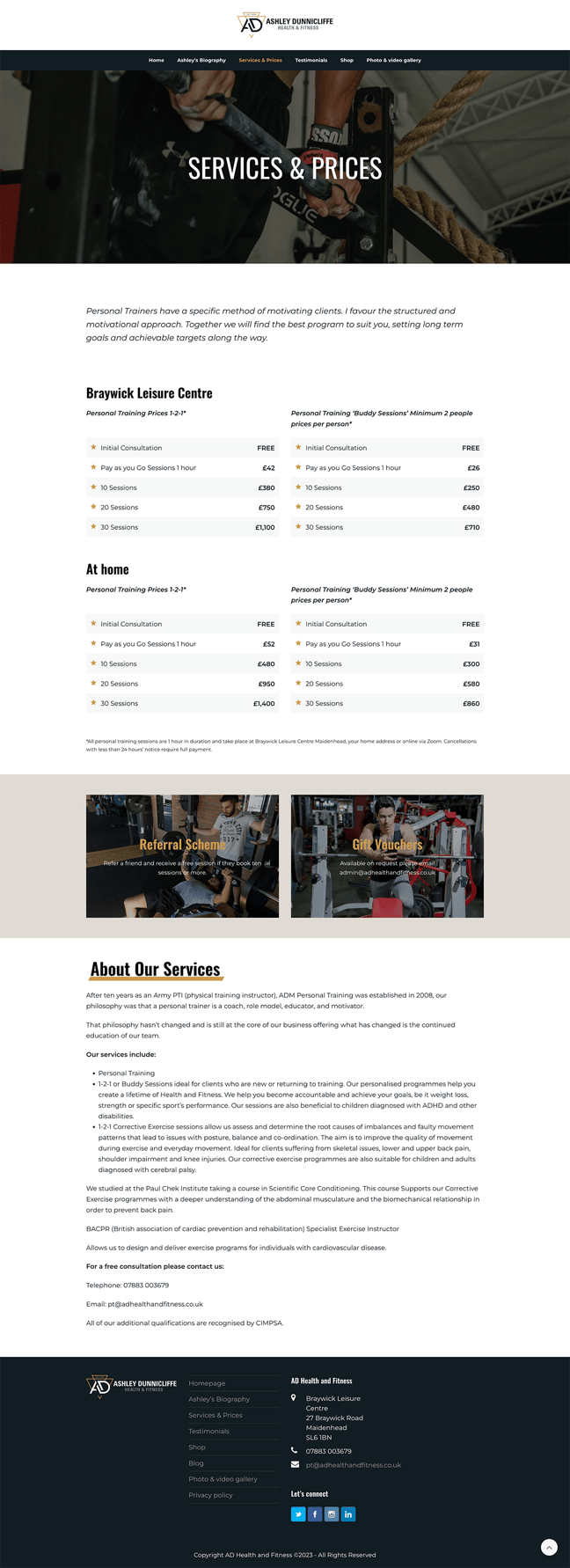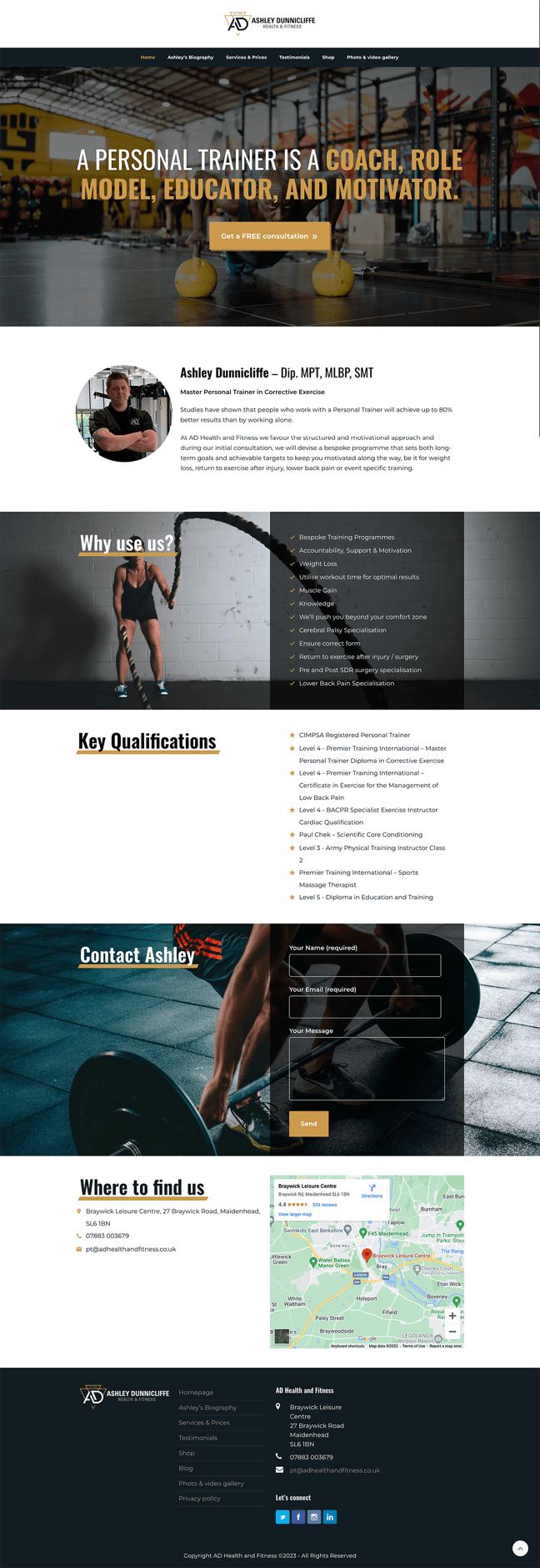 AD Health & Fitness offer a structured and motivational approach to personal training. With a brand identity in place they needed a website to increase their on-line visibility and attract new clients.