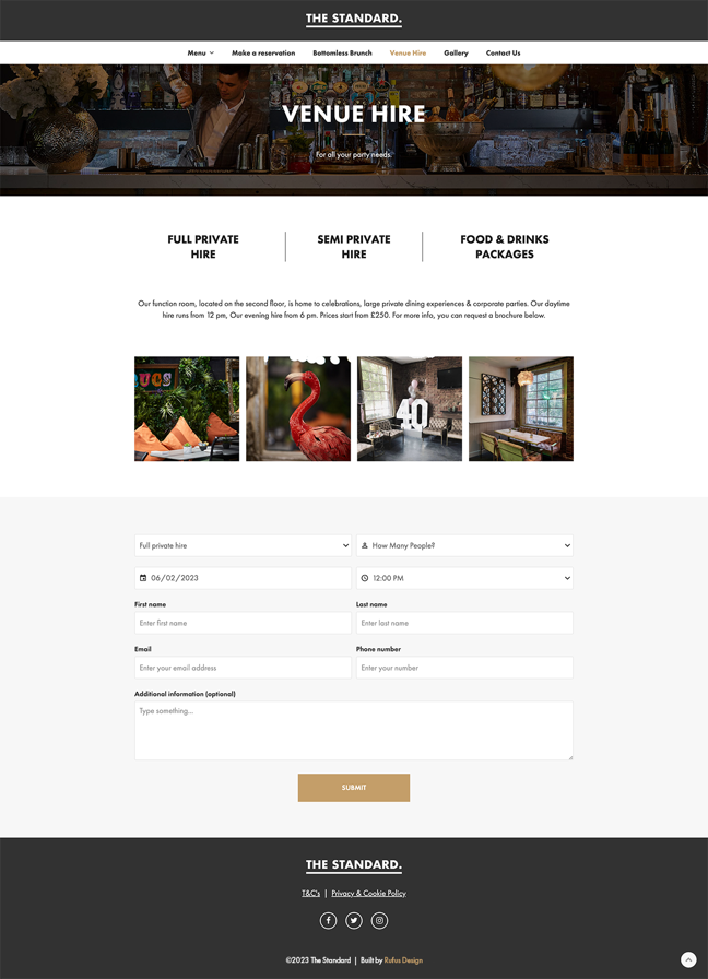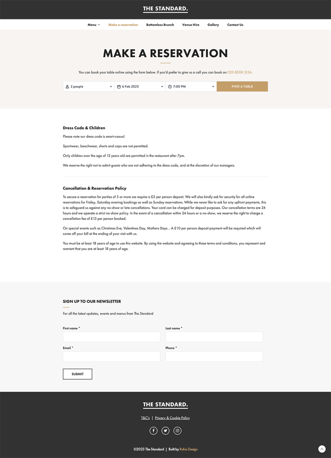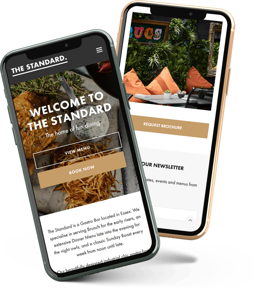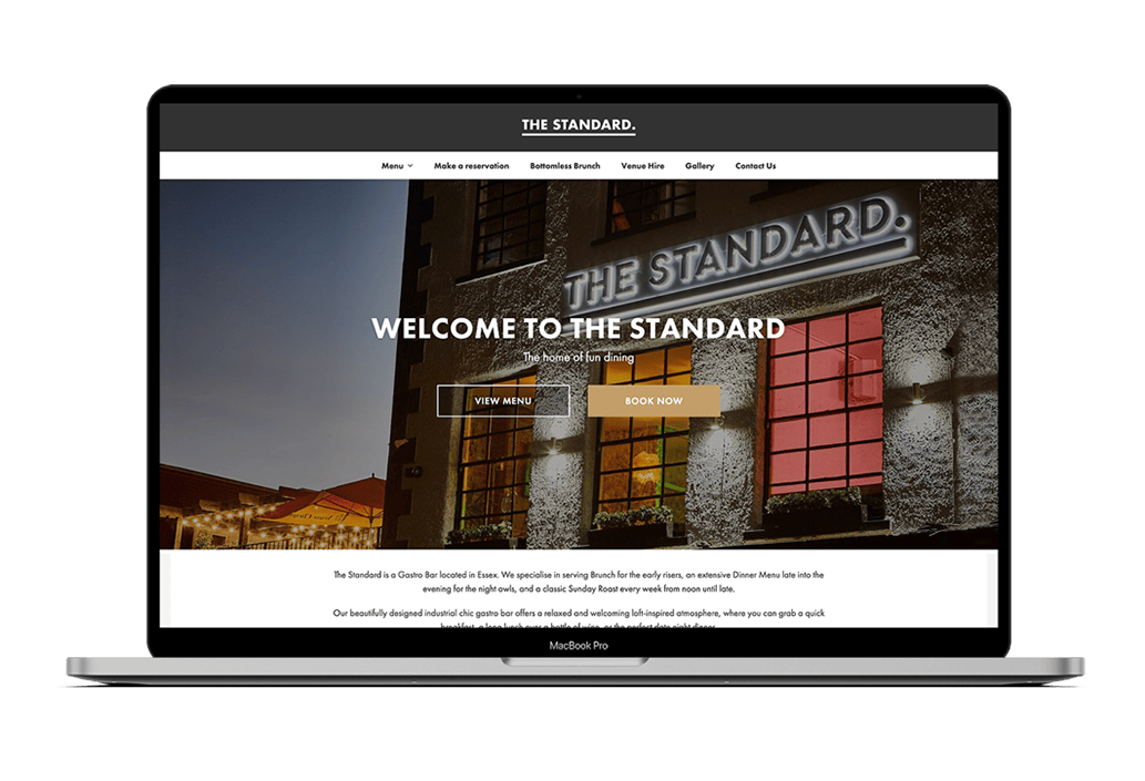 The Standard is a beautifully designed industrial chic gastro bar in Essex, offering a relaxed and welcoming atmosphere, and bespoke cocktail menu. We designed and built a fully responsive website that showcases their fantastic food and drink offerings, and an easy to use booking system.
